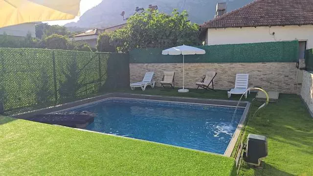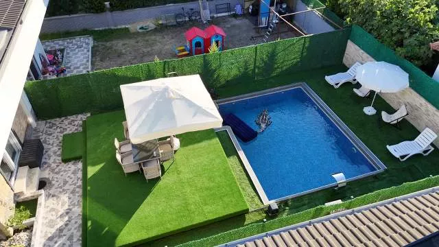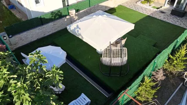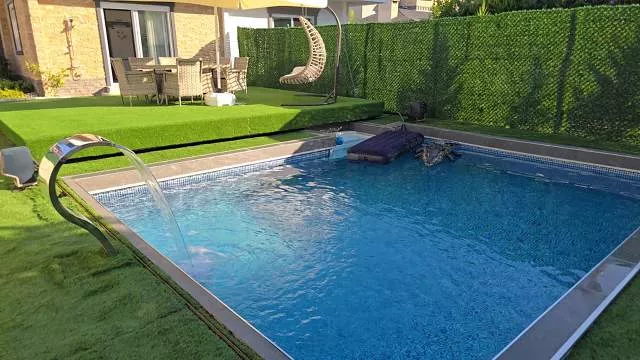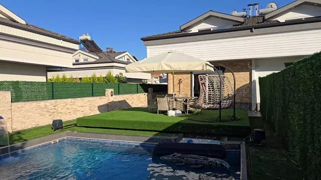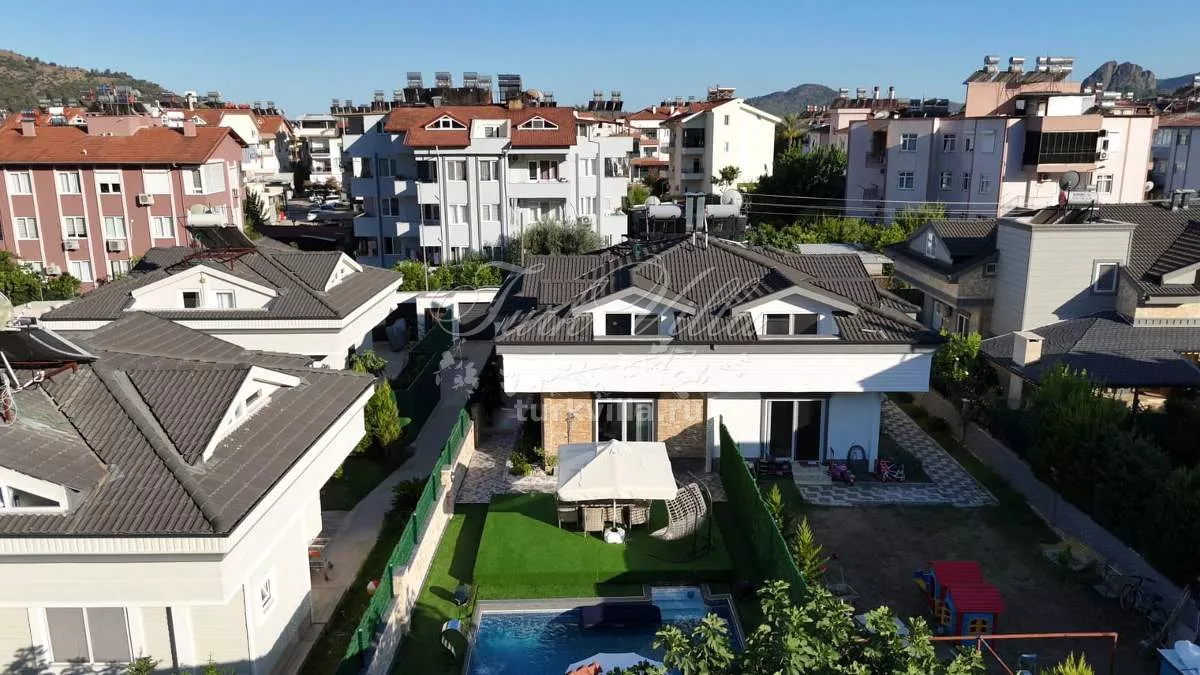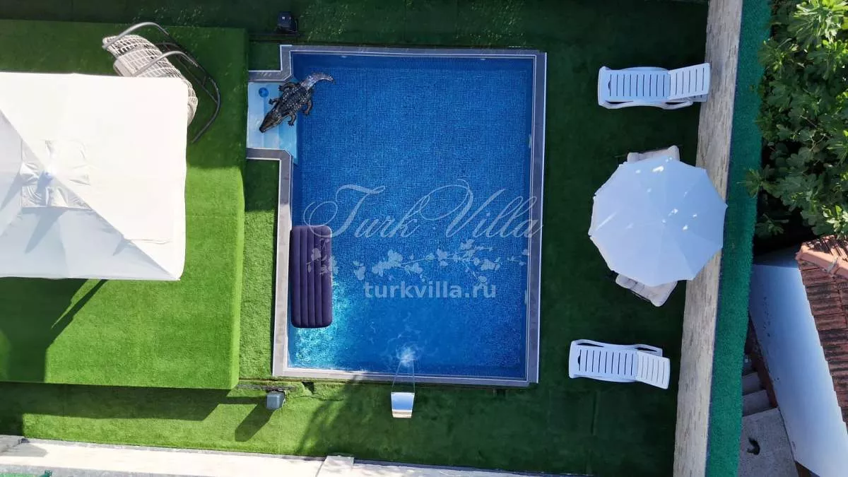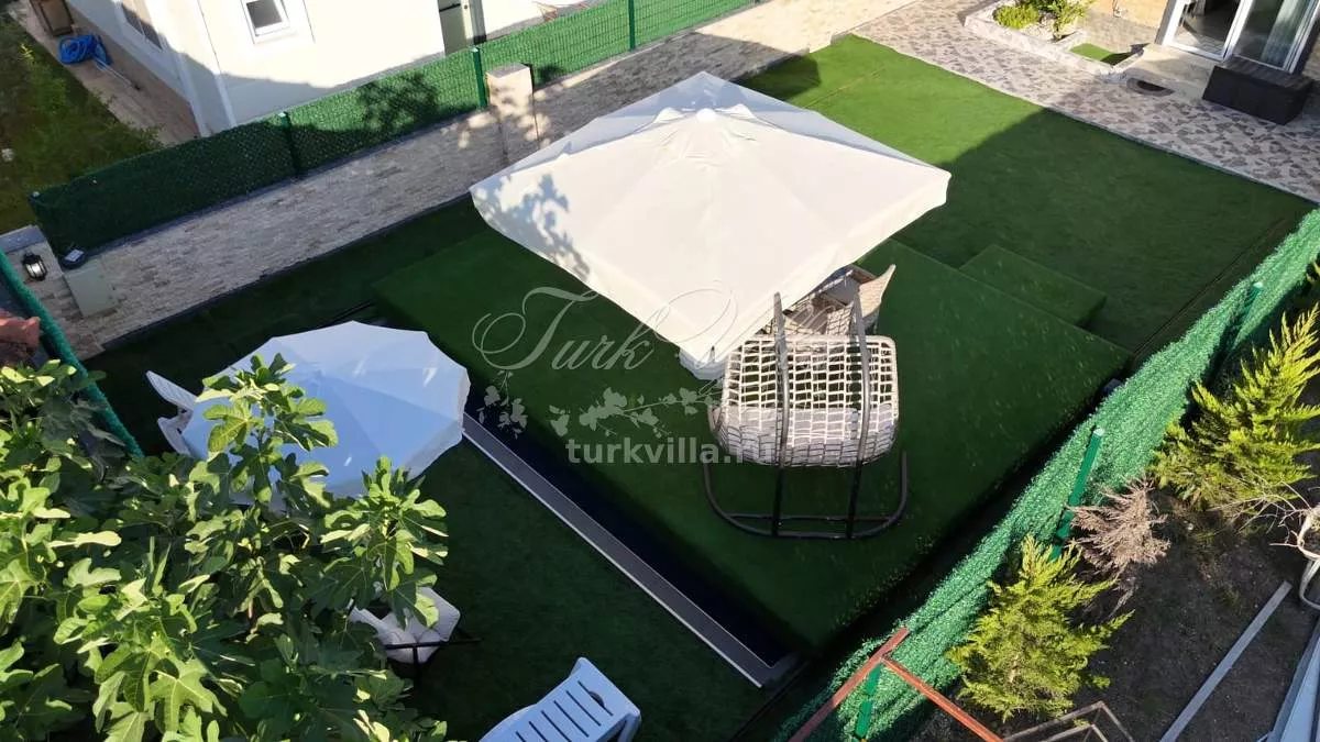 Вилла имеет планировку 4+1 и общую площадь 200 м². Дом расположен на участке 360 м², где предусмотрен собственный бассейн с душевой зоной и уютный внутренний двор. На территории полностью сохранена приватность, что делает виллу прекрасным вариантом для спокойной семейной жизни.
