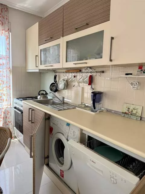 Комплекс располагает закрытой территорией, открытым бассейном, лифтом и ухоженным внутренним двором. Находится в шаговой доступности от супермаркета Migros, остановки общественного транспорта и местной пекарни. До моря — около 2 км.