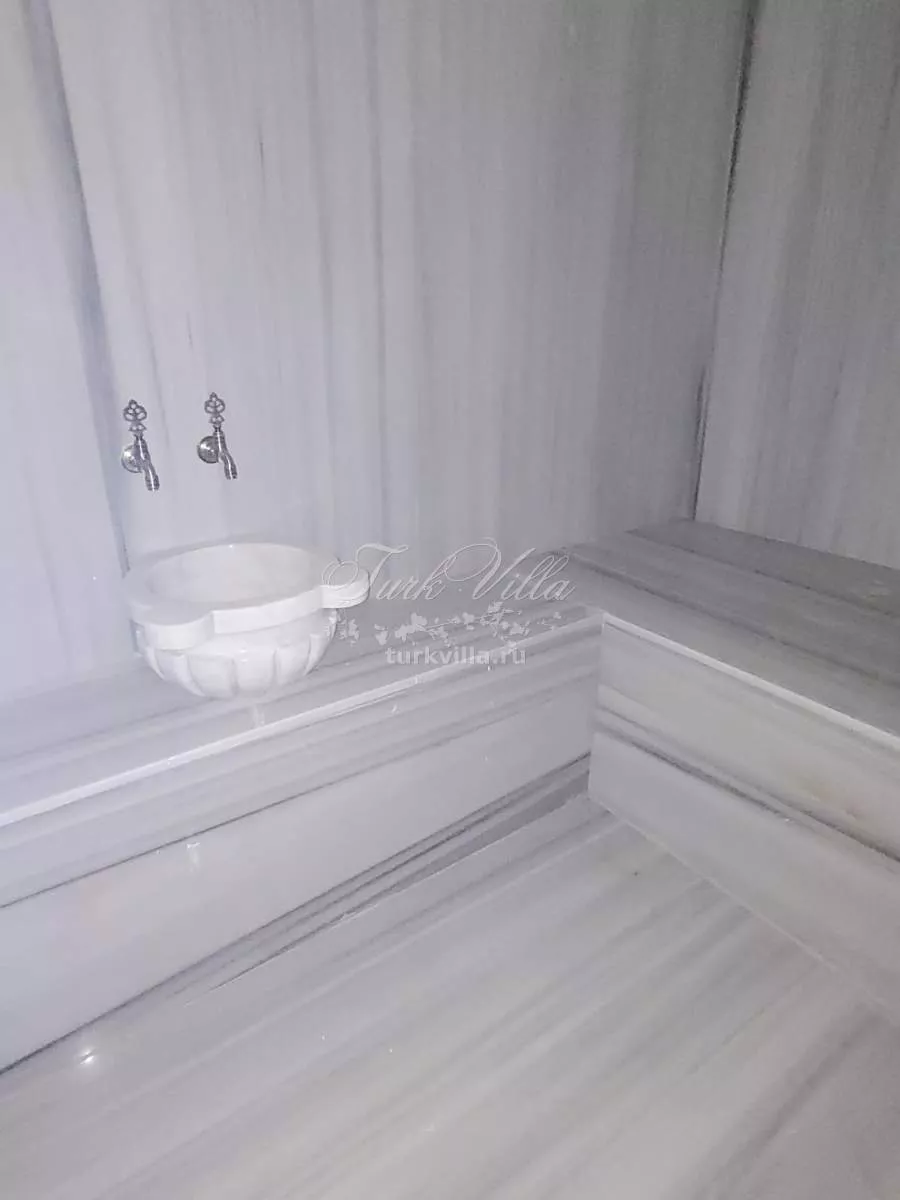 Дом состоит из трёх этажей. На нижнем уровне расположен большой подземный паркинг на две машины, индивидуальный турецкий хамам и сауна, а также просторная комната отдыха рядом с зоной отдыха. Здесь же предусмотрена отдельная прачечная комната. Из гаража на каждый этаж виллы поднимается внутренний лифт, что является редким и ценным преимуществом.