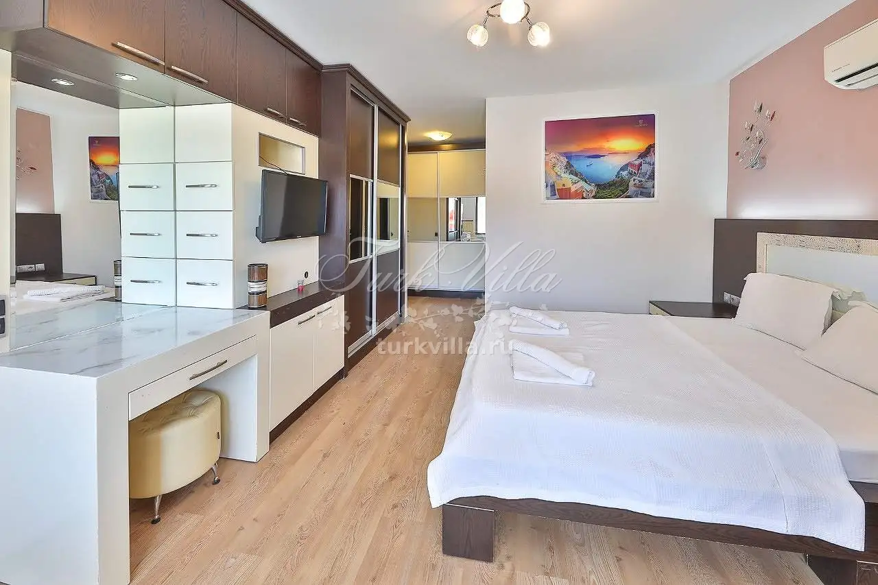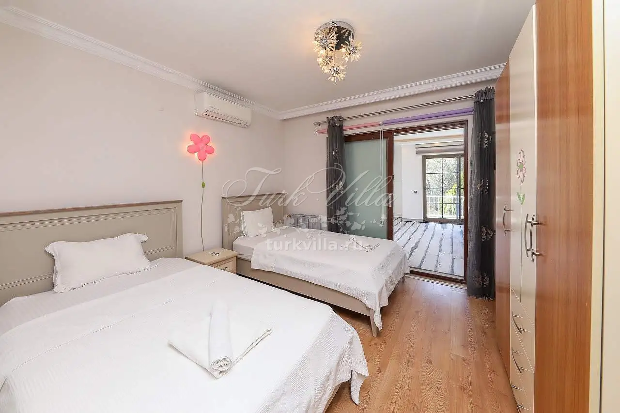 Спальня 4 - двуспальная кровать, односпальная кровать, кондиционер, шкаф для одежды, туалетный столик, тумбочка, санузел.