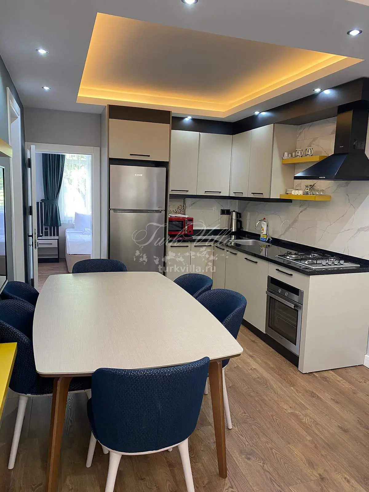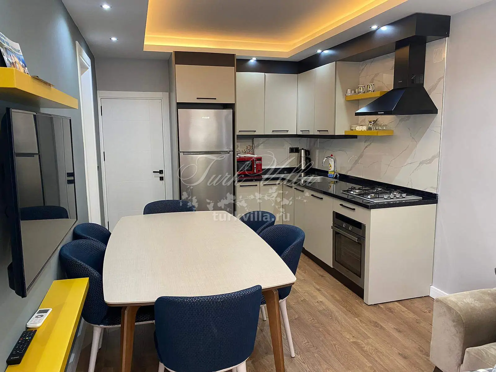 Полностью оборудованная кухня, посуда и столовые приборы на 6 человек.