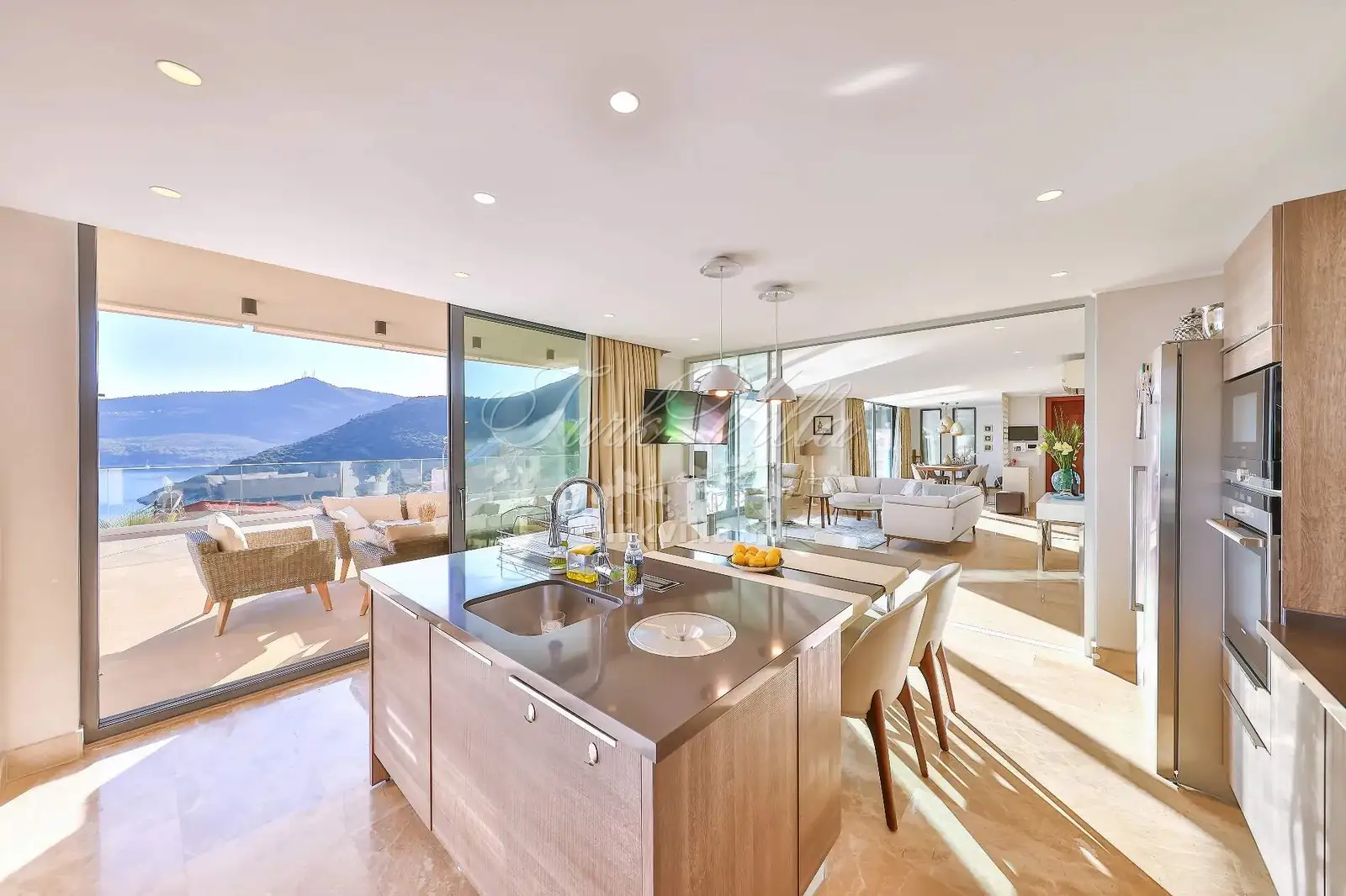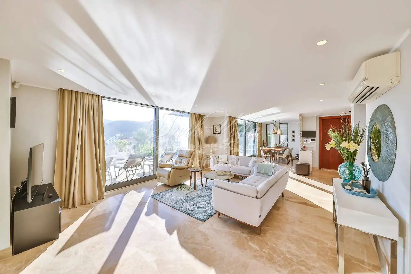 Роскошная вилла с панорамным видом на море и природу расположена в Калкане всего в 500 метрах от моря. Это идеальный и комфортный вариант для больших семей. Вилла, окутанная атмосферой уюта, предлагает из каждой комнаты уникальные виды благодаря высоким панорамным окнам и роскошной отделке.