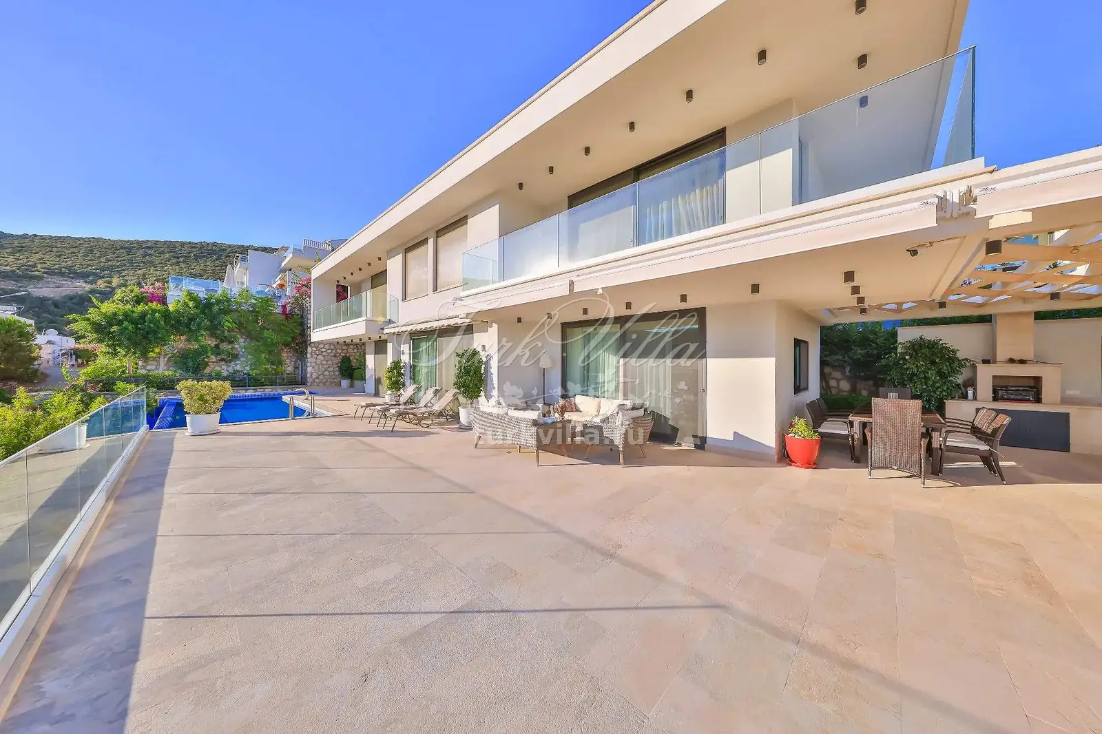 Частный сад, Частный бассейн, Зона для загара, Шезлонги, Зонтики, Обеденный стол на 10 человек, Качели, Барбекю