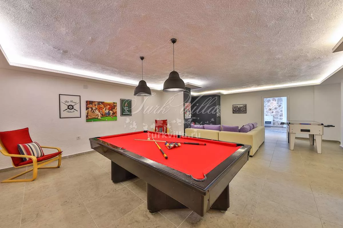 Частный бассейн, парковка, интернет, телевизор, балкон с видом на природу и море, кинозал, бассейн с подогревом, джакузи, сауна, бильярд, настольный футбол, барбекю.