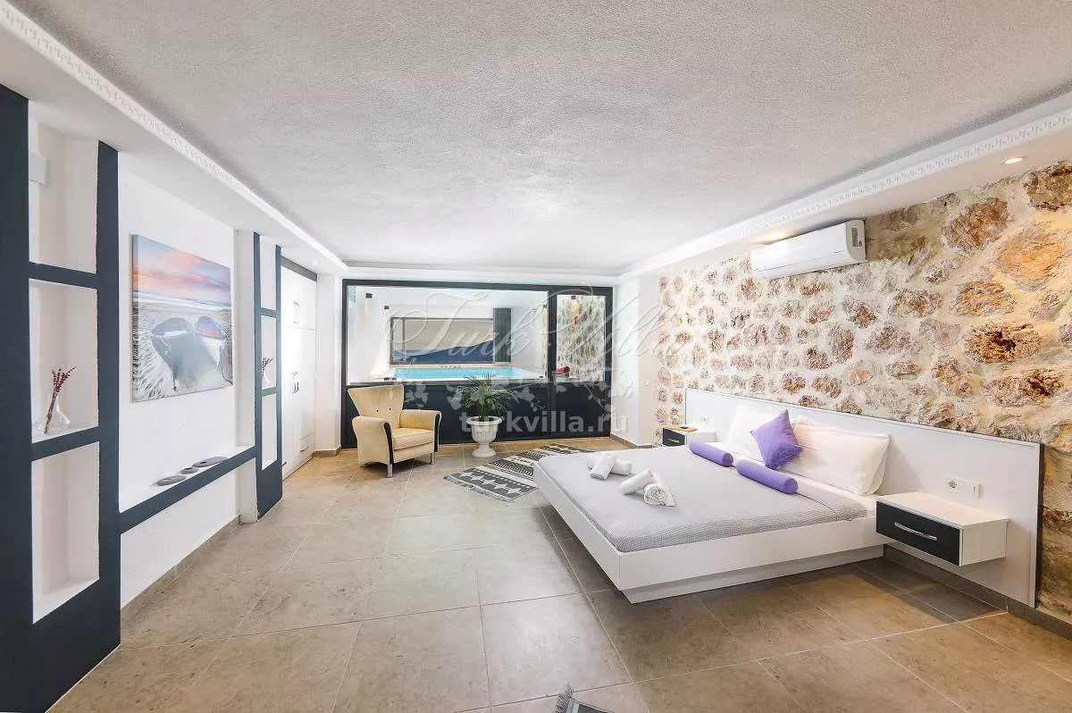 Добро пожаловать на нашу роскошную виллу в живописном районе Калкана, расположенную в Кызылташ. Наши 4 просторные спальни с собственными ванными комнатами могут принять до 8 человек, предоставляя комфорт и уединение для всех гостей. Вилла расположена на холме, откуда открывается завораживающий вид на залив Калкана, а из каждой комнаты можно наслаждаться этой потрясающей панорамой.