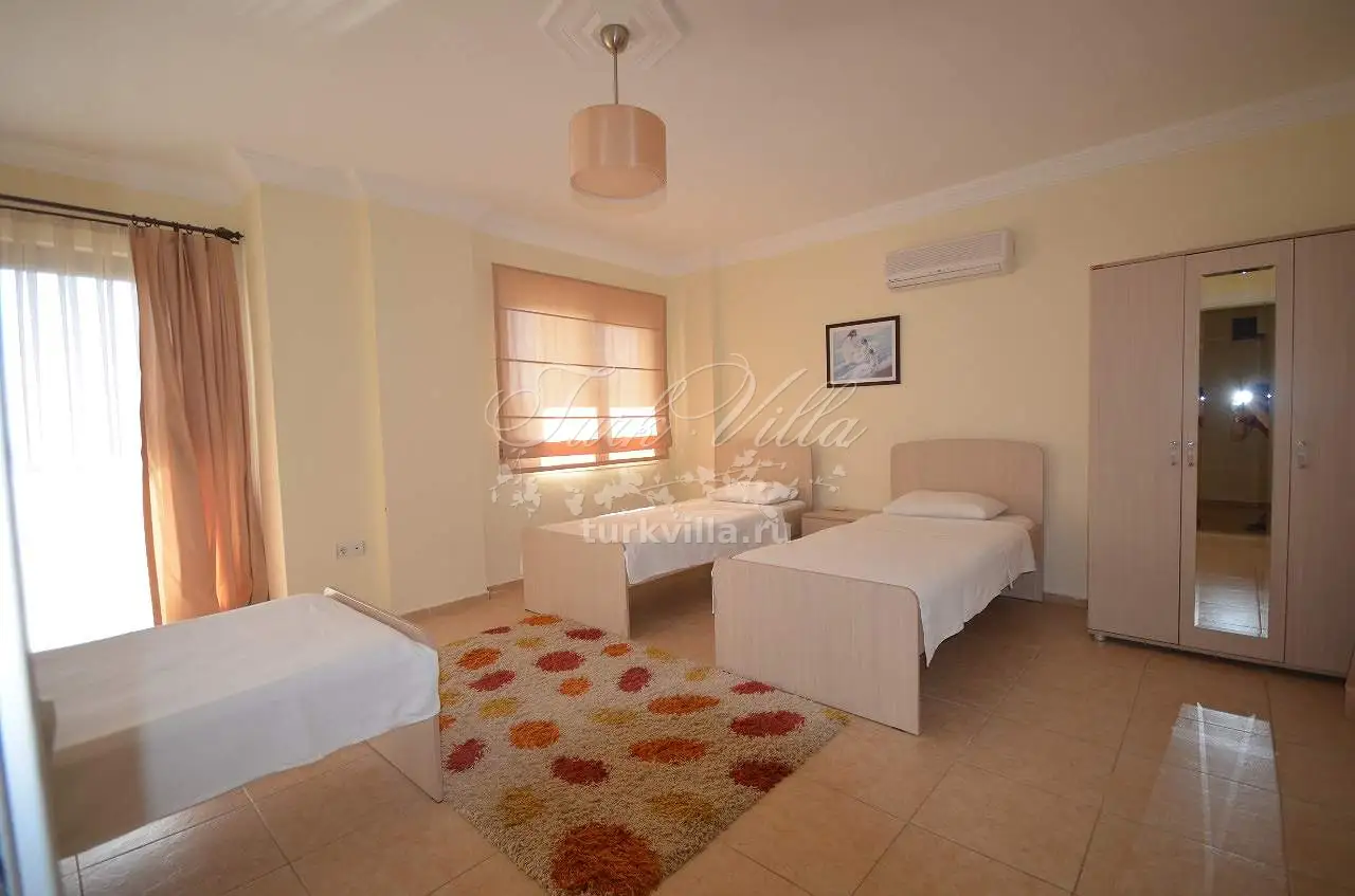 Спальня 1 - 2 односпальные кровати, кондиционер, санузел, выход на террасу у бассейна.