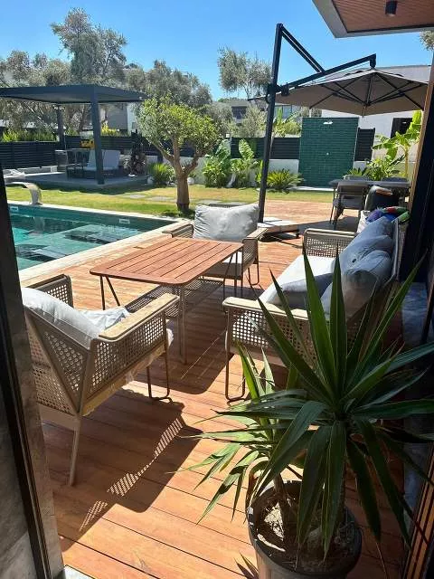 – Терраса с очагом и зоной отдыха у бассейна
