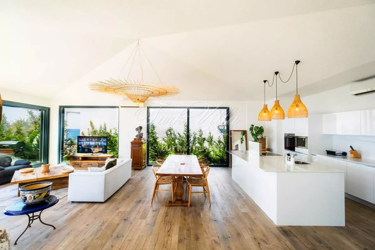 Предлагается в аренду вилла с панорамным видом на Эгейское море, расположенная в регионе Тургутреис, Бодрум. Это идеальное место для тех, кто ищет комфорт, простор и впечатляющие закаты в окружении природы и тишины.