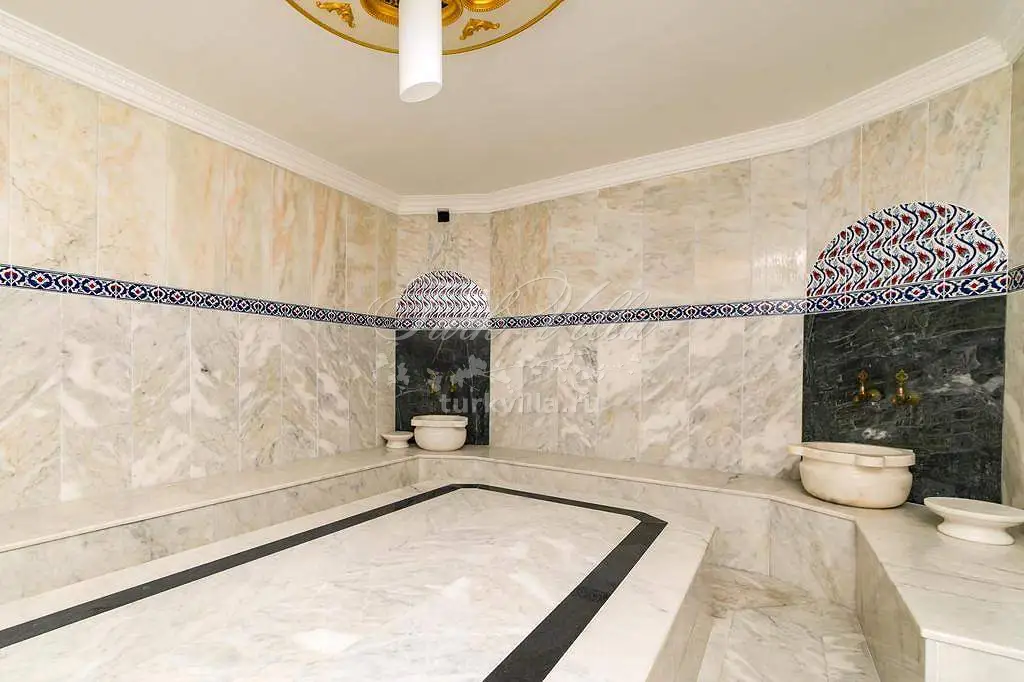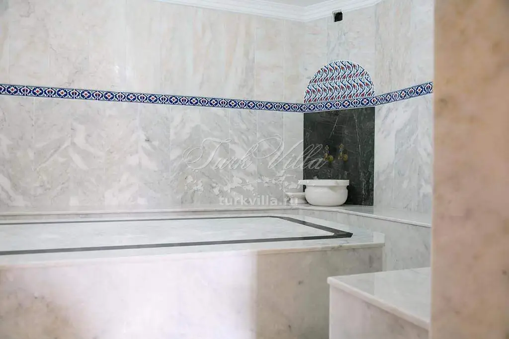 В доме помимо полностью оборудованной кухни, гостиной и пяти просторных спален гости могут пользоваться хамамом.