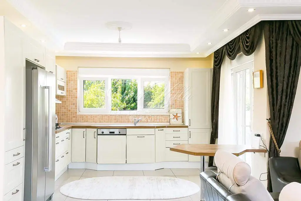 Вилла с большой ухоженной территорией расположена всего в 600 метрах от моря, идеально подходит для полноценного отдыха большой семьей или компанией друзей. На территории виллы открытый бассейн, терраса для загара, барбекю, стоянка для одного автомобиля.