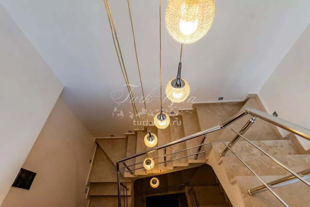 Общая площадь — 350 м². Вилла имеет три этажа, удобную планировку с шестью отдельными спальнями, двумя гостиными, несколькими санузлами и балконами. Просторные комнаты, хорошее естественное освещение, высокие потолки и современная отделка создают атмосферу уюта и функциональности.