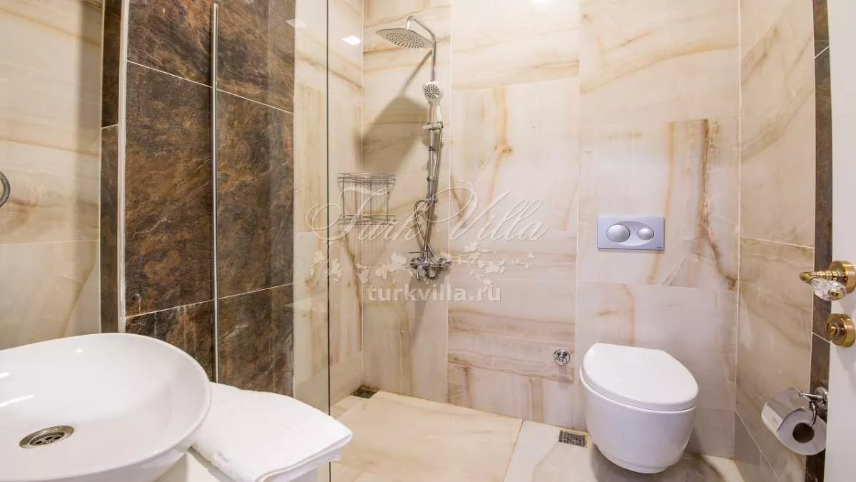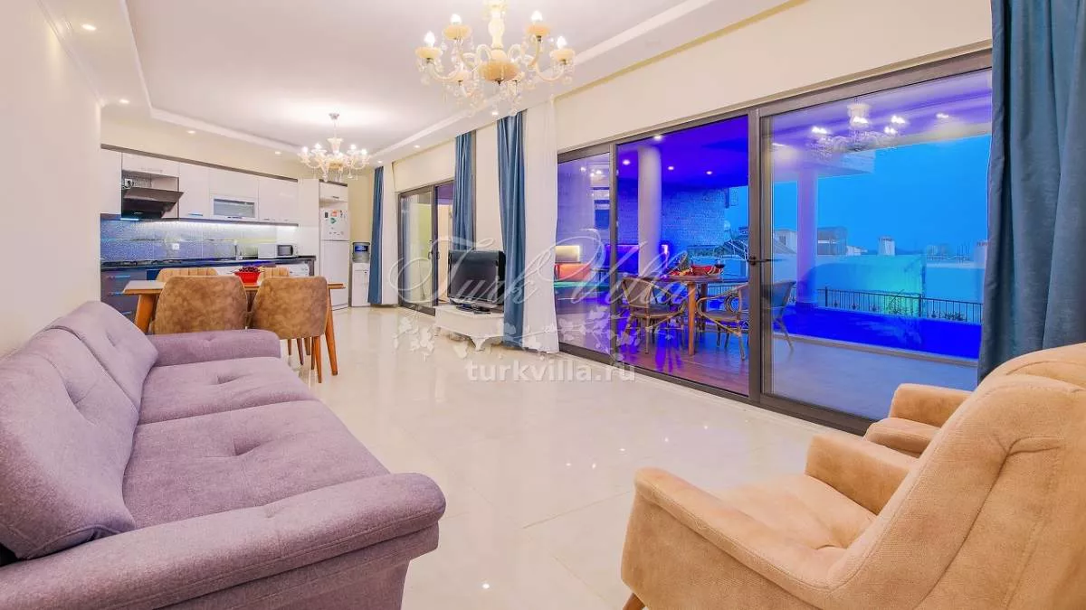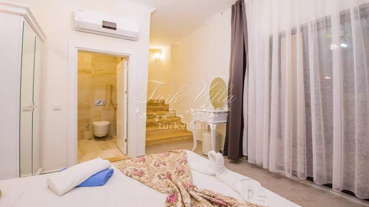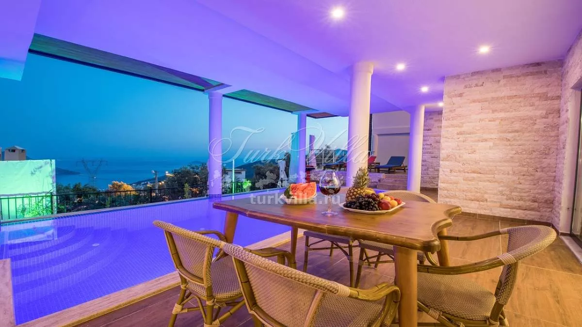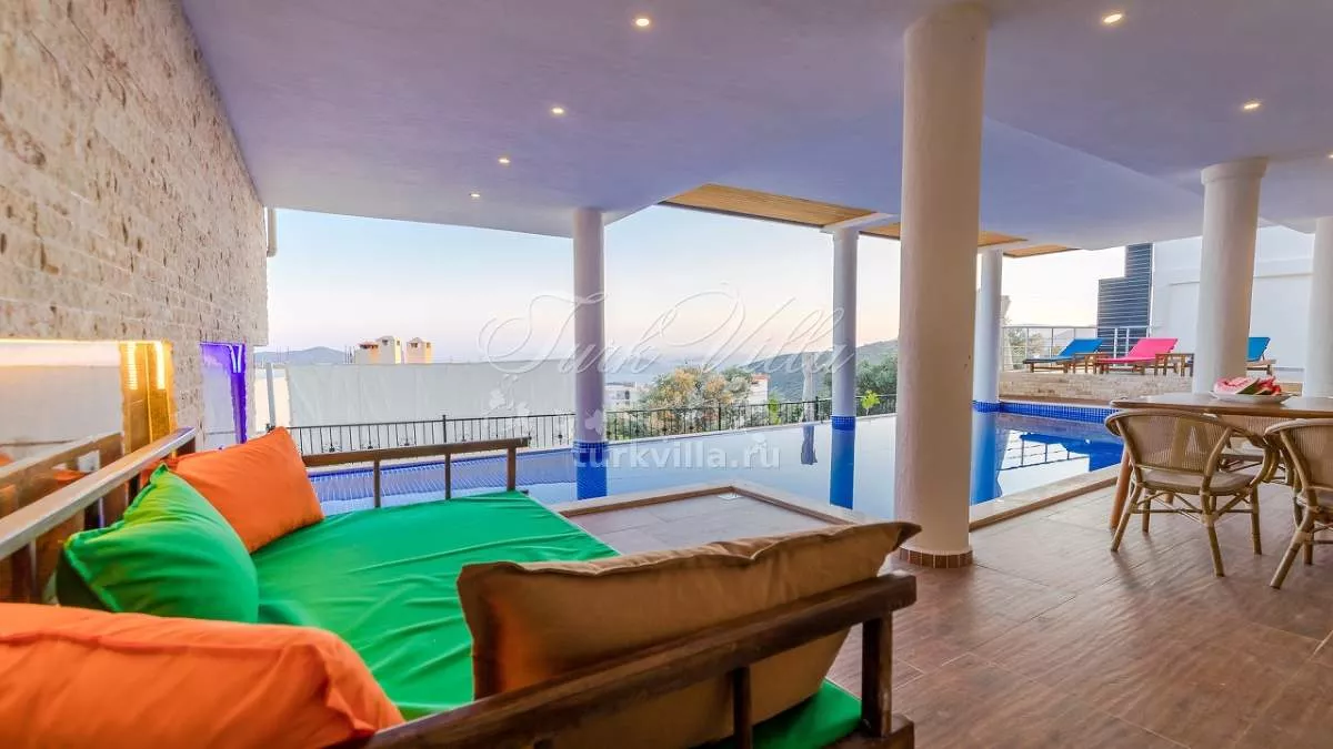 Вилла расположена в районе Акбель (Калкан), у подножия Торосских гор. Здесь открывается потрясающий панорамный вид на море и природу. Благодаря своему расположению дом окружён зеленью и тишиной, что делает его идеальным местом для уединённого отдыха. На террасе оборудована зона отдыха, где можно весь день наслаждаться свежим воздухом и красотой пейзажей.