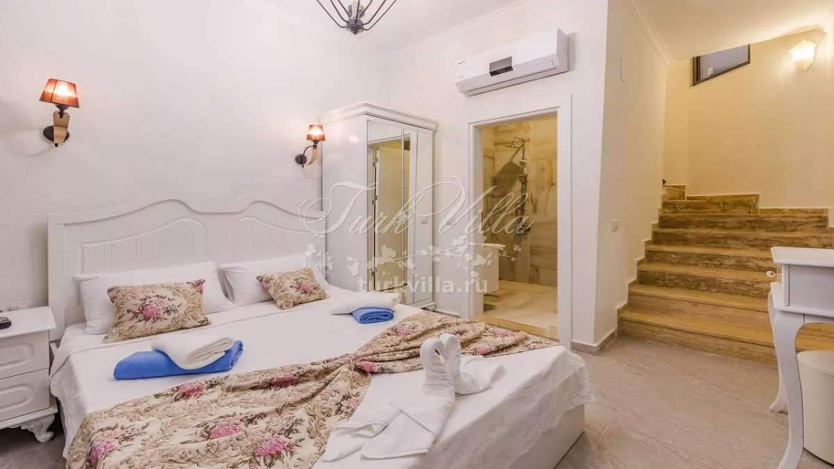 • главная спальня с двуспальной кроватью, ванной комнатой и кондиционером