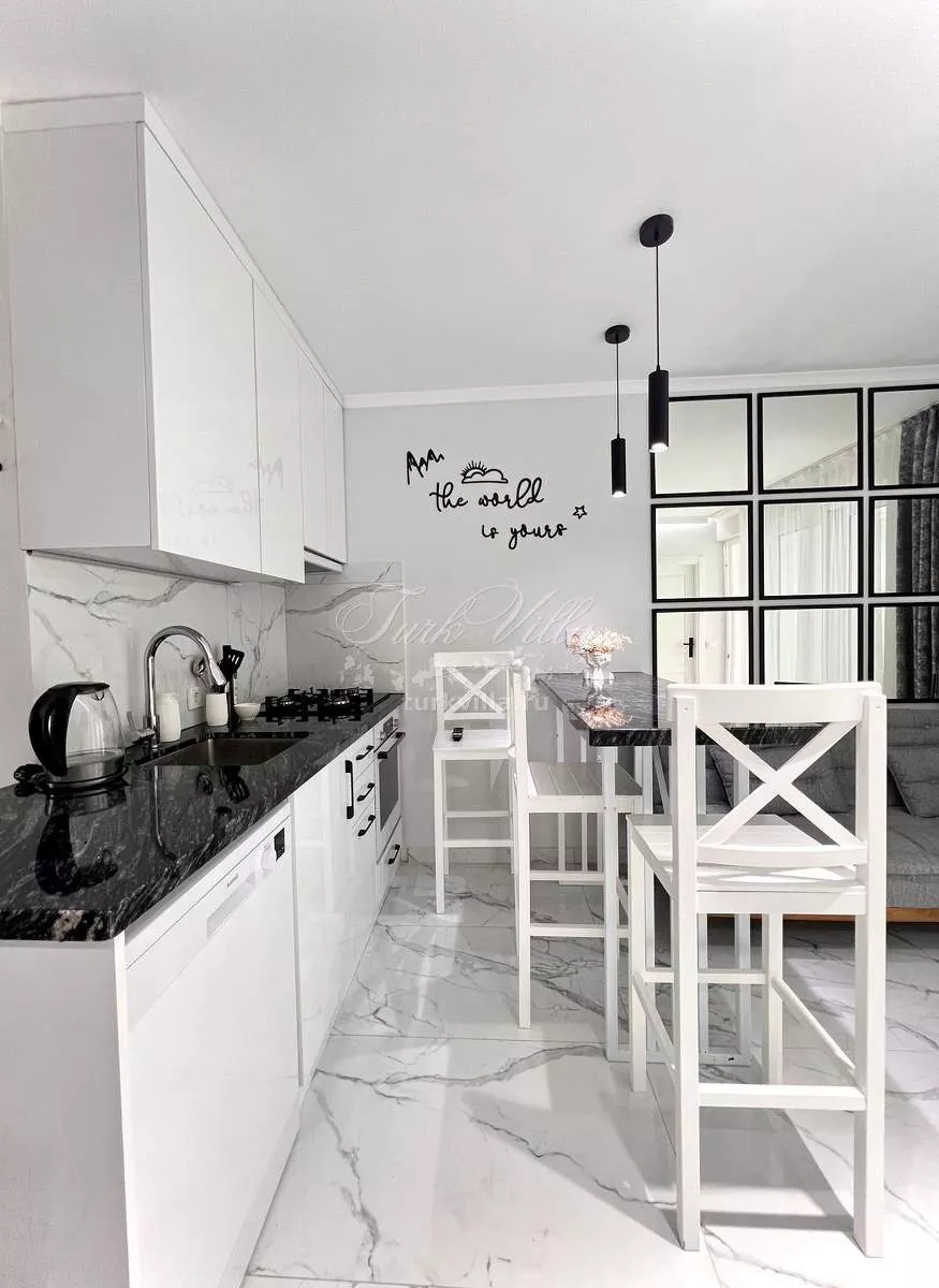 Расположение — одно из главных преимуществ. Центр Кемера предлагает шаговую доступность к магазинам, кафе, школам и пляжу, что делает этот объект прекрасным выбором для круглогодичного проживания.