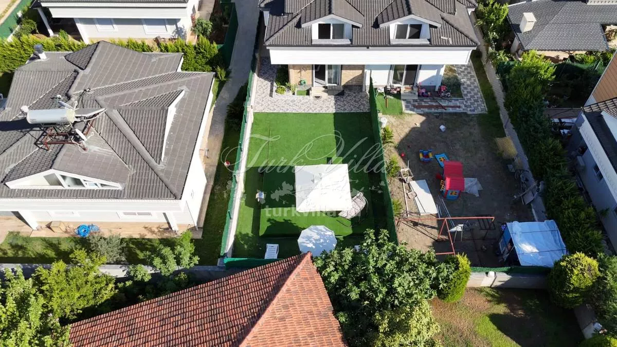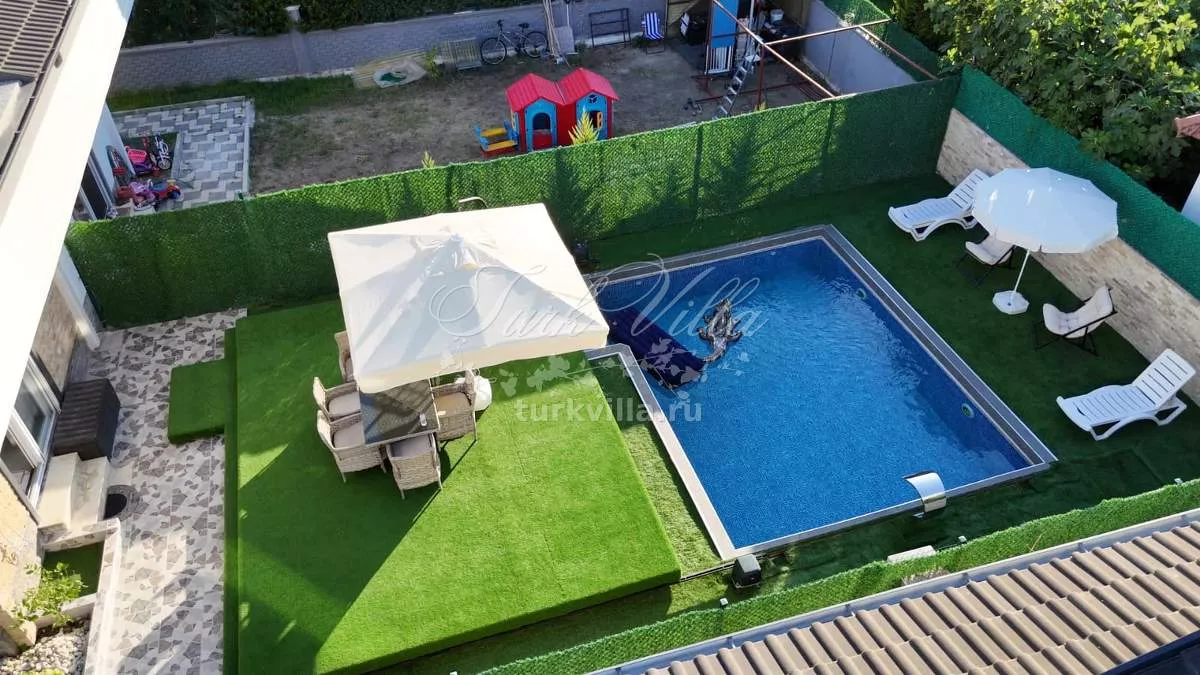 Вилла имеет планировку 4+1 и общую площадь 200 м². Дом расположен на участке 360 м², где предусмотрен собственный бассейн с душевой зоной и уютный внутренний двор. На территории полностью сохранена приватность, что делает виллу прекрасным вариантом для спокойной семейной жизни.